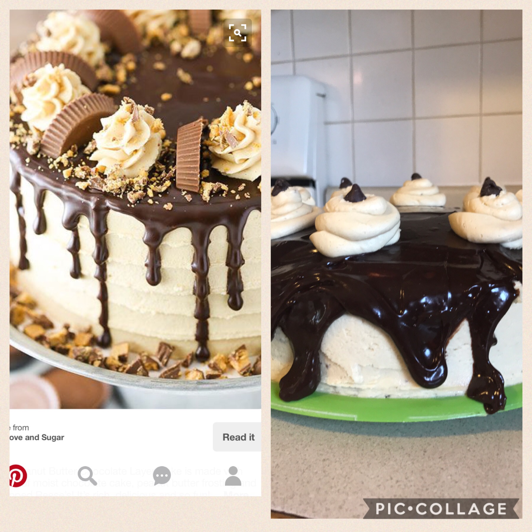 It was my husband’s birthday. I found the perfect chocolate cake with peanut butter frosting and ganache topping on Pinterest. I followed the recipe. Well to be completely honest I followed the recipe like I usually do. A little more of this because I slipped. A little less of that because I ran out. When I finished, every time I looked at the cake I laughed. It looks absolutely nothing like the three tiered beautiful cake I had started out to create.