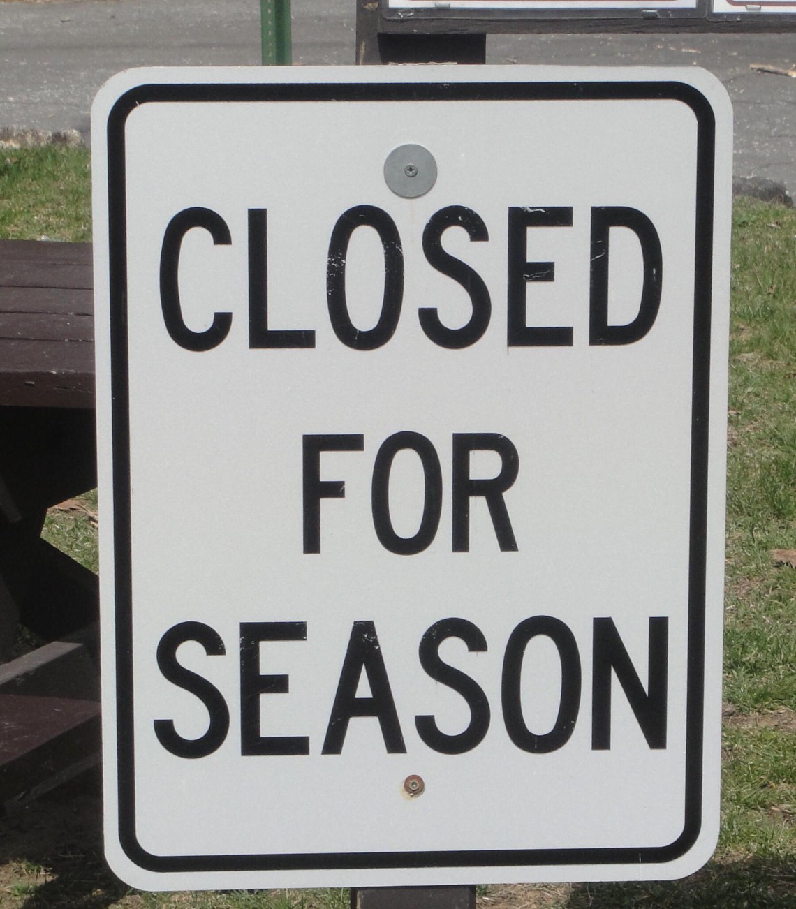 We are in the middle of winter in my area of the country. As we drove toward a popular summer tourist destination town I saw signs above empty lots are usually packed. Large “closed for the season” signs were plastered in front of the usually informative signs.